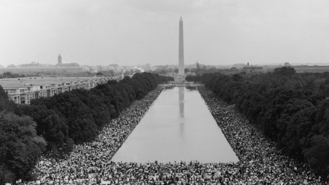 A view from the Lincoln Memorial toward the Washington Monument at the end of the March on Washington for Jobs and Freedom, where Martin Luther King Jr gave his “I Have a Dream” speech in August 1963.