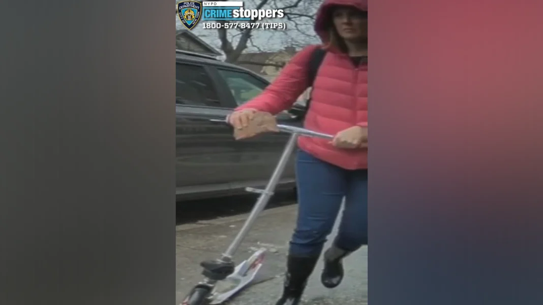 The woman appeared to have been riding a scooter, according to surveillance footage from the NYPD. (NYPD CrimeStoppers)