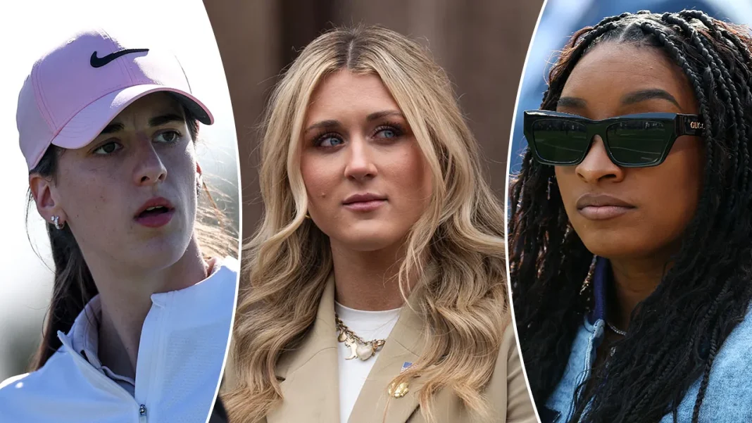 Caitlin Clark, Riley Gaines and Simone Biles (Imagn)