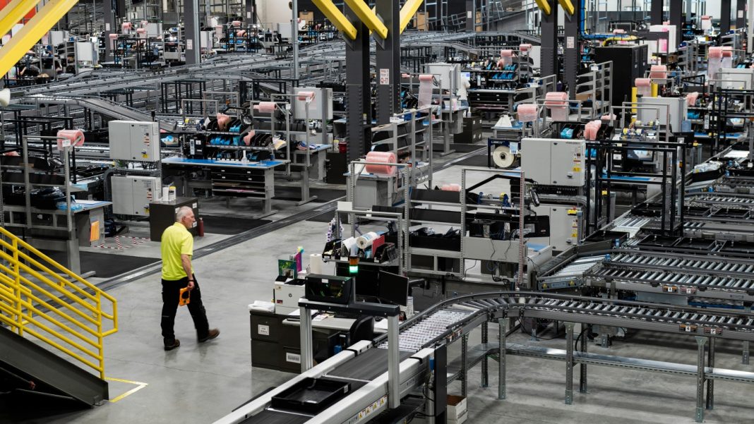 A DigiKey worker packs an order at the company’s warehouse, which operates a foreign trade zone that allows some imports to be stored as if they hadn’t entered U.S. soil.