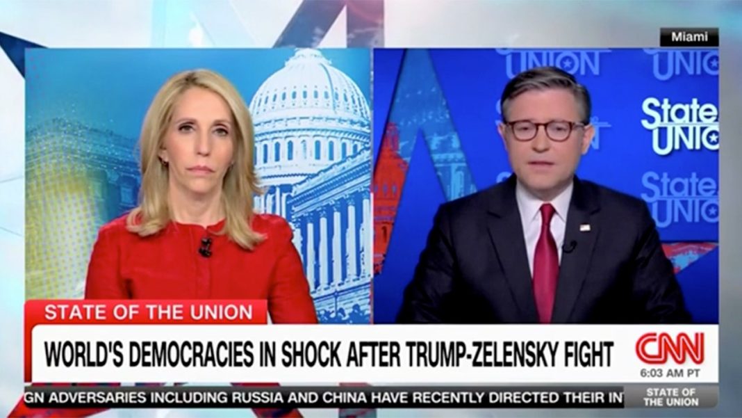 CNN’s Dana Bash asked Johnson to respond to Republican Alaska Sen. Lisa Murkowski’s reaction to the Trump-Zelenskyy clash. Murkowski accused Trump of “walking away from our allies and embracing Putin,” in a post on X.