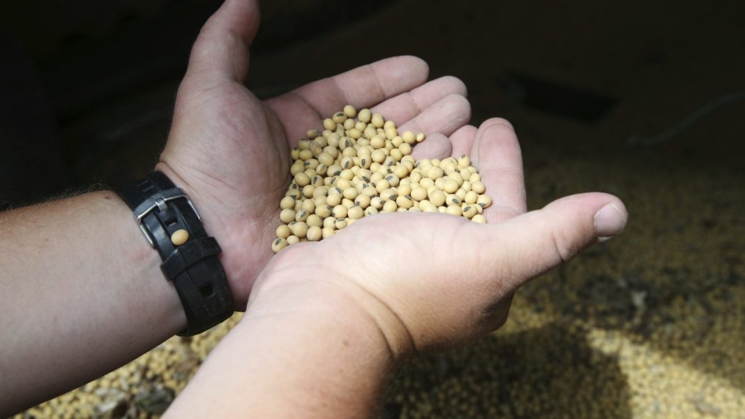 IN this 2018 photo Minnesota soybean farmer Michael Petefish holds soybeans from his farm in southern Minnesota. At that time American farmers, like now, were worried about the possibility of an escalating trade war after tariffs were imposed on imports during the first Trump administration.