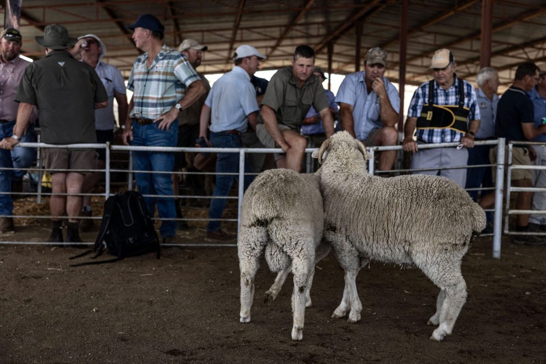 Farmers inspect show sheep at the Philippolis Show in Philippolis on November 1, 2024. (Photo by PAUL BOTES/AFP via Getty Images)
