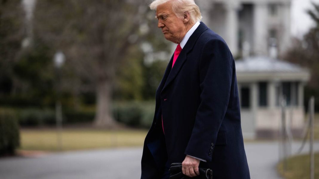 President Trump walks to the Residence after arriving to the White House on Feb. 22. The administration is facing legal challenges over its effort to freeze payments for federal grants and other programs.