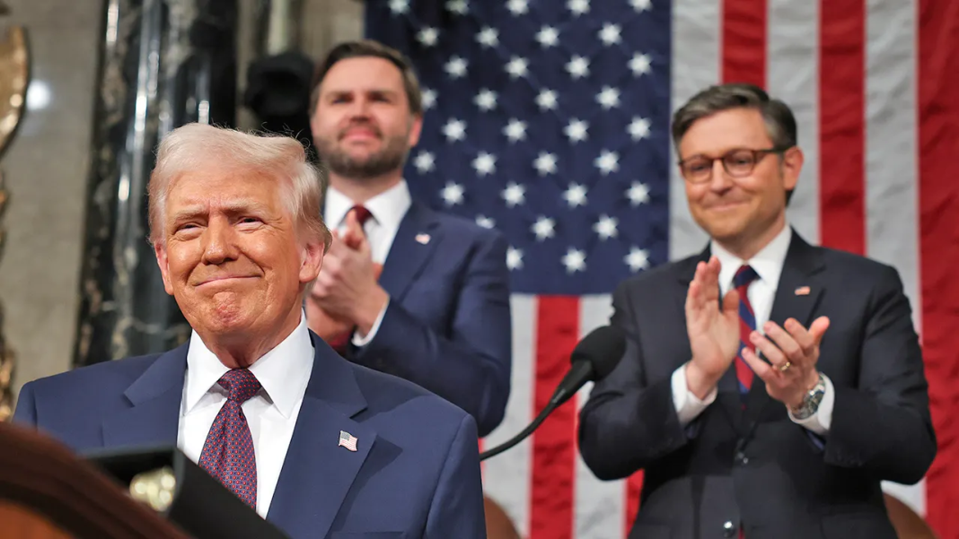 U.S. Vice President JD Vance and Speaker of the House Mike Johnson (R-LA) applaud as U.S. President Donald Trump addresses a joint session of Congress at the U.S. Capitol on March 04, 2025 in Washington, DC. President Trump was expected to address Congress on his early achievements of his presidency and his upcoming legislative agenda.  (Win McNamee/Getty Images)
