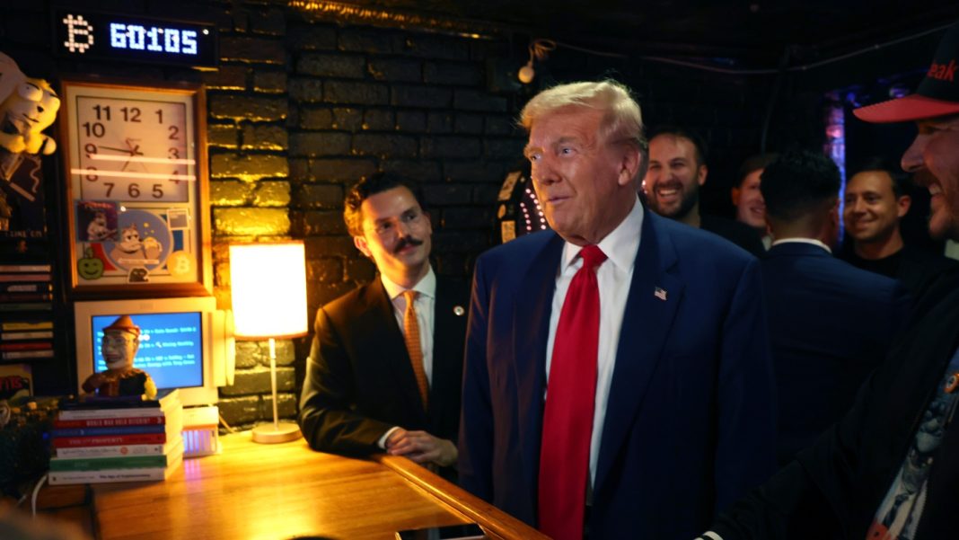 President Trump embraced cryptocurrency during his campaign, including during this visit to a cryptocurrency-themed bar called Pubkey in New York City on Sept. 18.